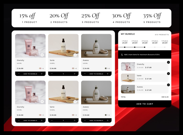 Build polished, on-brand bundles with our no-code editor. Every layout, font, and style is customizable — no fragile scripts or theme hacks needed.
